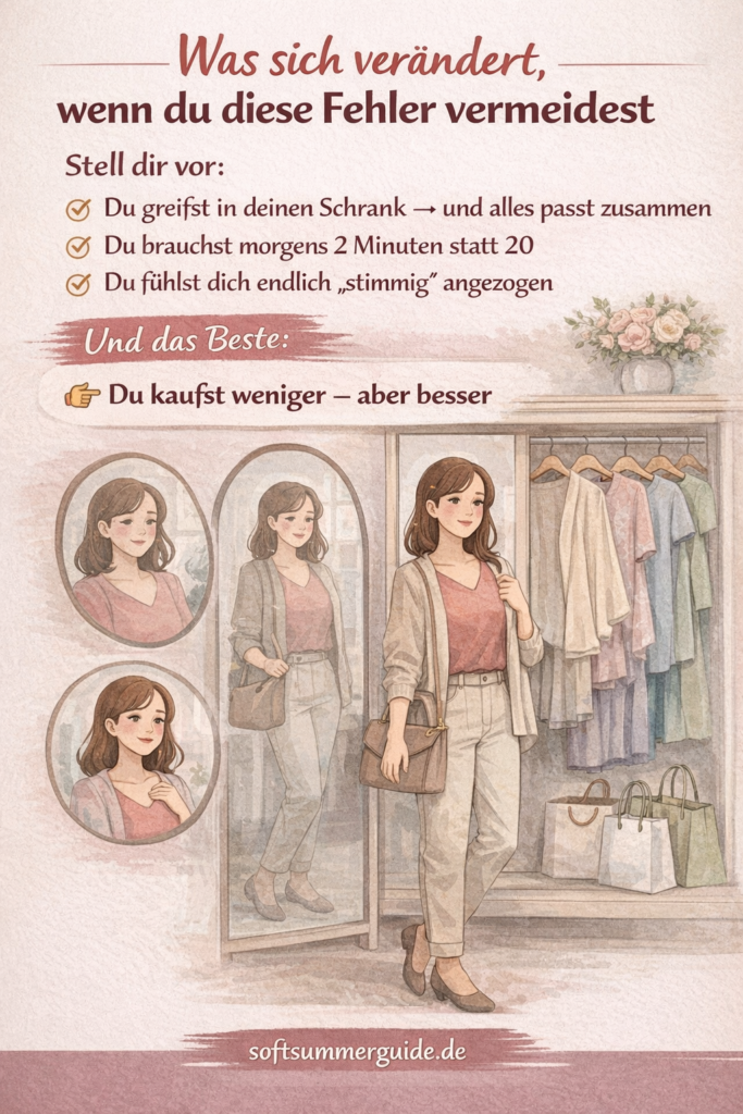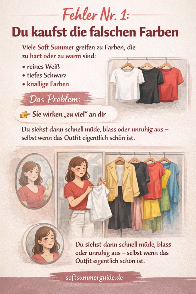 Sondern daran, dass dein Kleiderschrank nicht zu deinem Farbtyp passt. Gerade beim Soft Summer Farbtyp machen viele immer wieder die gleichen Fehler – ohne es zu merken.