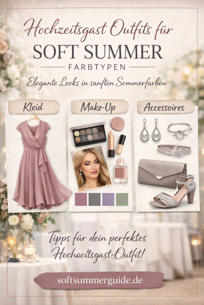In diesem Artikel findest du Inspiration für Hochzeitsgast-Outfits speziell für den Soft Summer Farbtyp, ergänzt durch Make-up-Tipps, passende Accessoires und typische Fehler, die du vermeiden solltest.