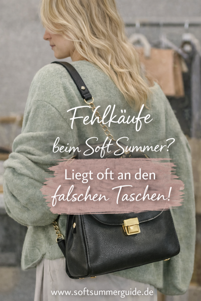 Weil Taschen große visuelle Flächen sind und den gesamten Look mitbestimmen. Wenn Farbe, Material oder Kontrast nicht zu deinem Soft Summer Typ passen, wirkt das Outfit schnell härter oder unstimmig, selbst wenn die Kleidung an sich gut gewählt ist.