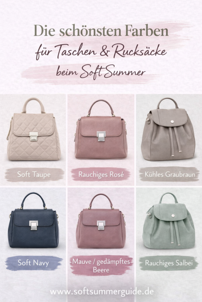 Genau darum geht es heute. Wir schauen uns an, welche Accessoires Farben beim Soft Summer harmonisch wirken, welche Nuancen oft zu Fehlkäufen führen und wie du Taschen und Rucksäcke leichter auf dein Outfit abstimmen kannst, ohne jedes Mal ewig zu überlegen.